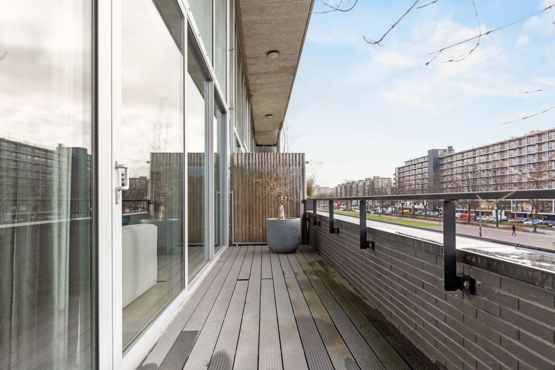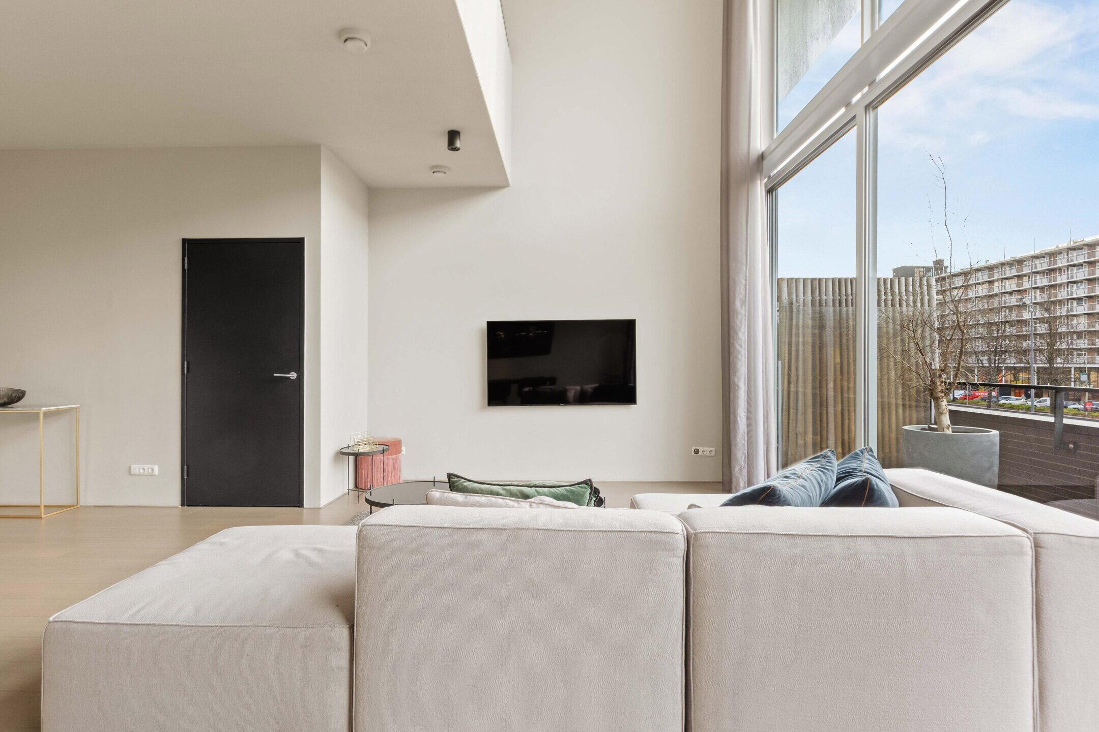 This impressive and luxuriously finished 3-room apartment of approximately 134m² is located on George Gershwinlaan, spread over two floors with private parking in the parking garage. A home that impresses immediately upon entering with its spaciousness, high ceilings, abundance of light, and exceptional view over the Boelegracht. Here you literally live above the water, with the bustling Zuidas within easy reach and at the same time a sense of tranquility and privacy.