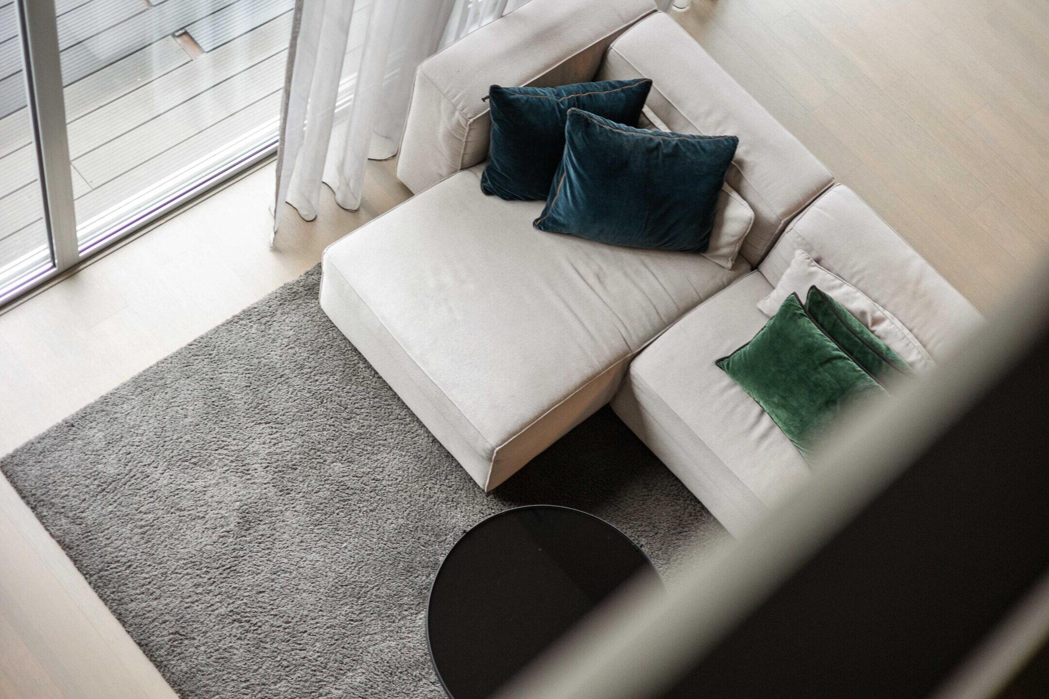 The loft to the upper floor ensures that the living areas are openly connected to each other.