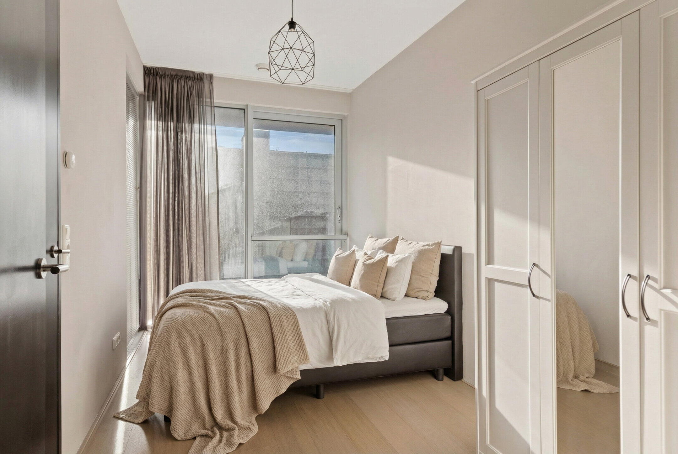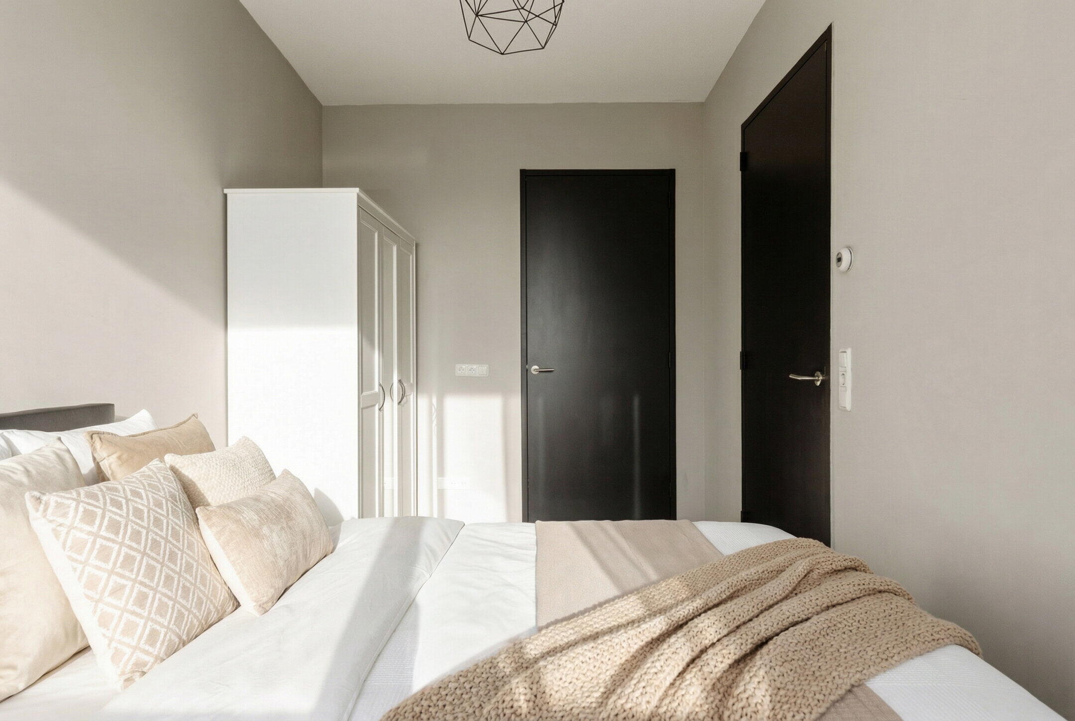 The house has two spacious bedrooms, both suitable for a double bed. The master bedroom is divided in such a way that you have direct access to a spacious walk-in closet.