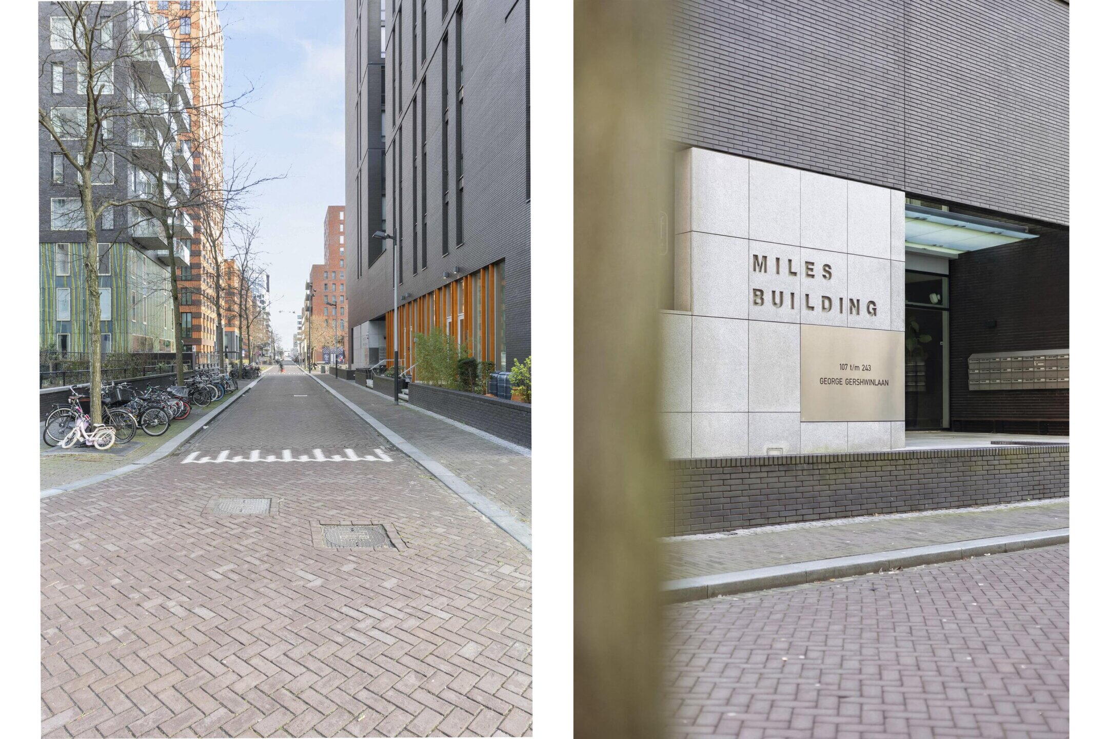 Het appartement maakt deel uit van het moderne en stijlvolle Miles Building (2011) en beschikt over een woningbreed balkon op het zonnige zuiden en een privé berging in het souterrain. Het gebouw beschikt over een representatieve, afgesloten entree met video-intercom, een fraai aangelegde binnentuin, liften en een huismeester.